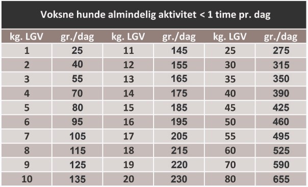 Vejledning for voksne hunde med almindelig aktivitetsniveau